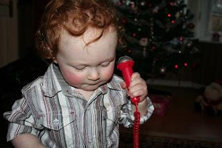 Then some shots on Christmas Day - attempt 1 to pull the tree down and the telltale dribble round his mouth showing Nanna-Rose is spoiling him with Chocolate.